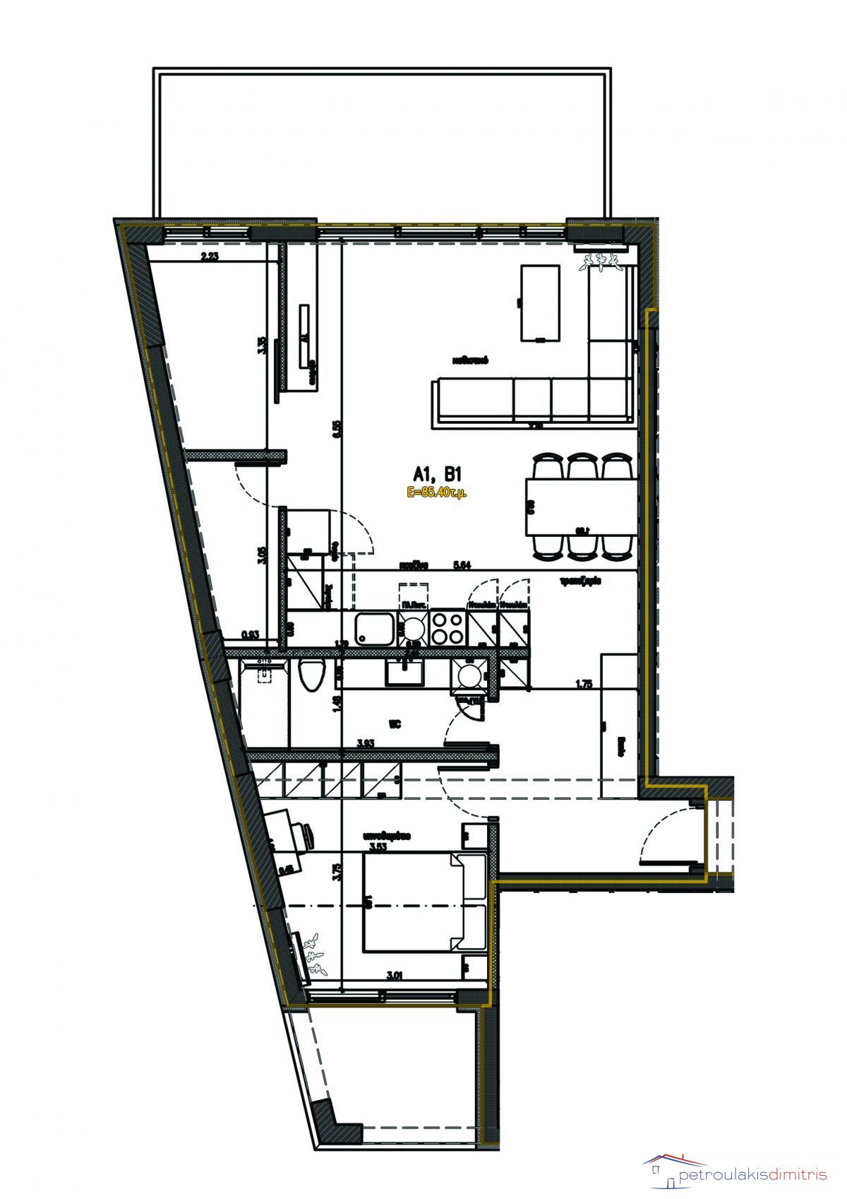 1ος όροφος A2 : 57,45 τ.μ., 195.000 €