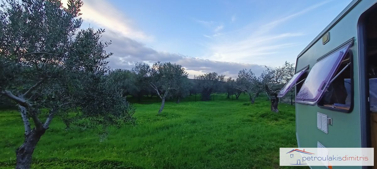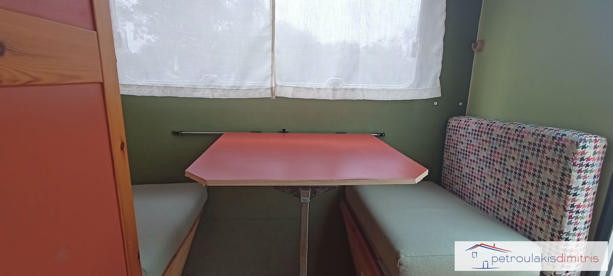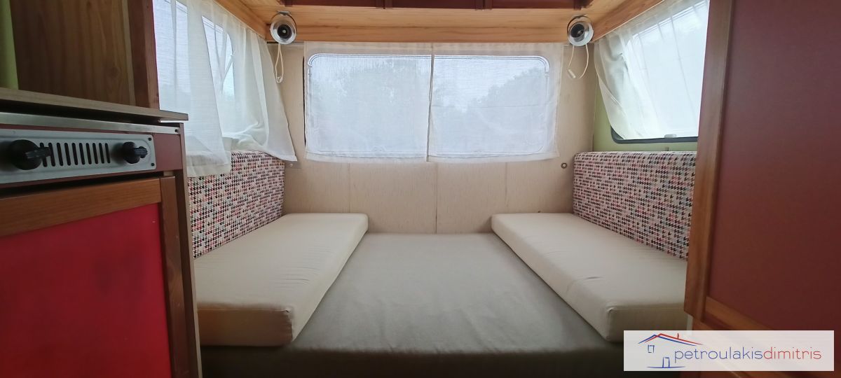 -  Ένα ανακαινισμένο vintage τροχόσπιτο που φιλοξενεί άνετα 3 άτομα για αποκλειστική χρήση εντός του οικοπέδου (χωρίς άδεια κυκλοφορίας).