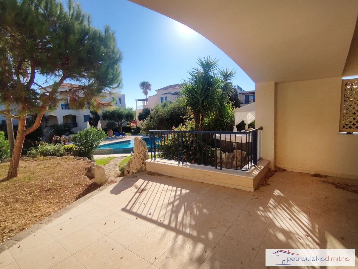 Η μονοκατοικία διαθέτει μία μεγάλη βεράντα και κήπο με άμεση πρόσβαση στην κοινόχρηστη πισίνα.
