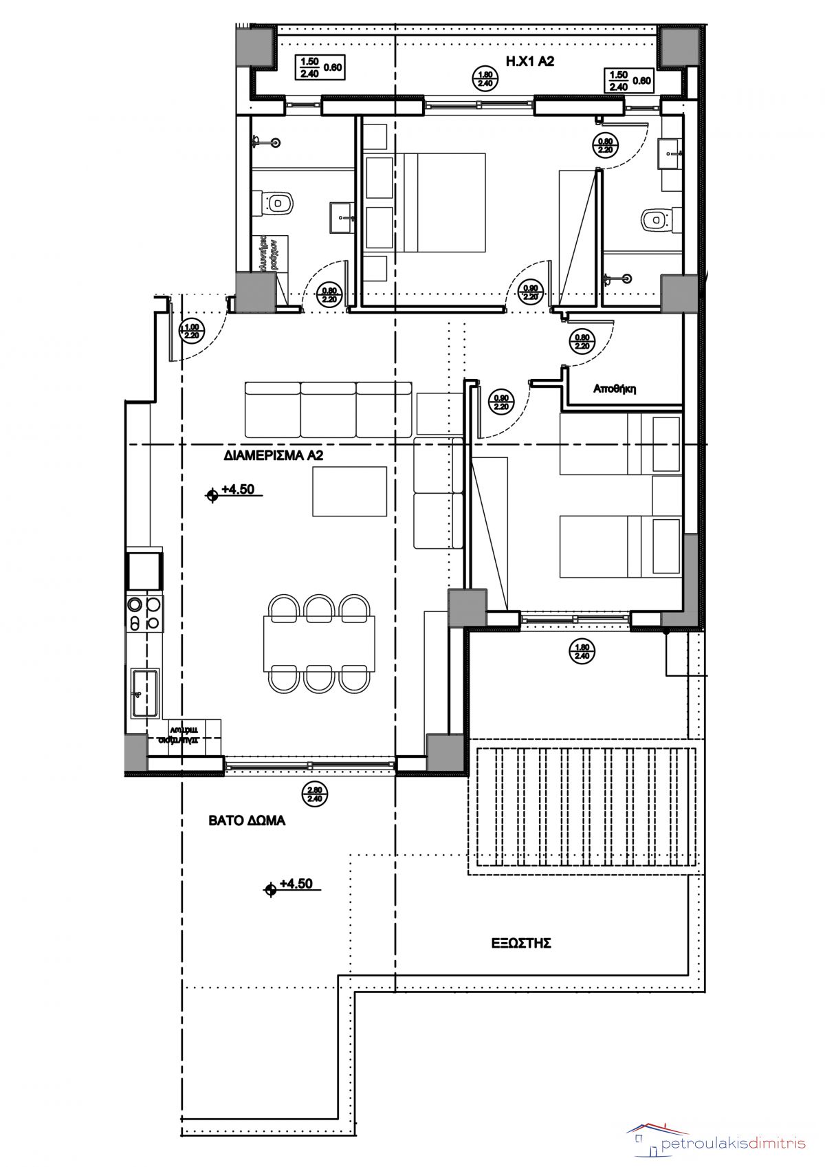 Αποτελείται από δύο υπνοδωμάτια, ενιαίο χώρο σαλοκουζίνας, μπάνιο, αποθήκη και εξώστες 17τ.μ..