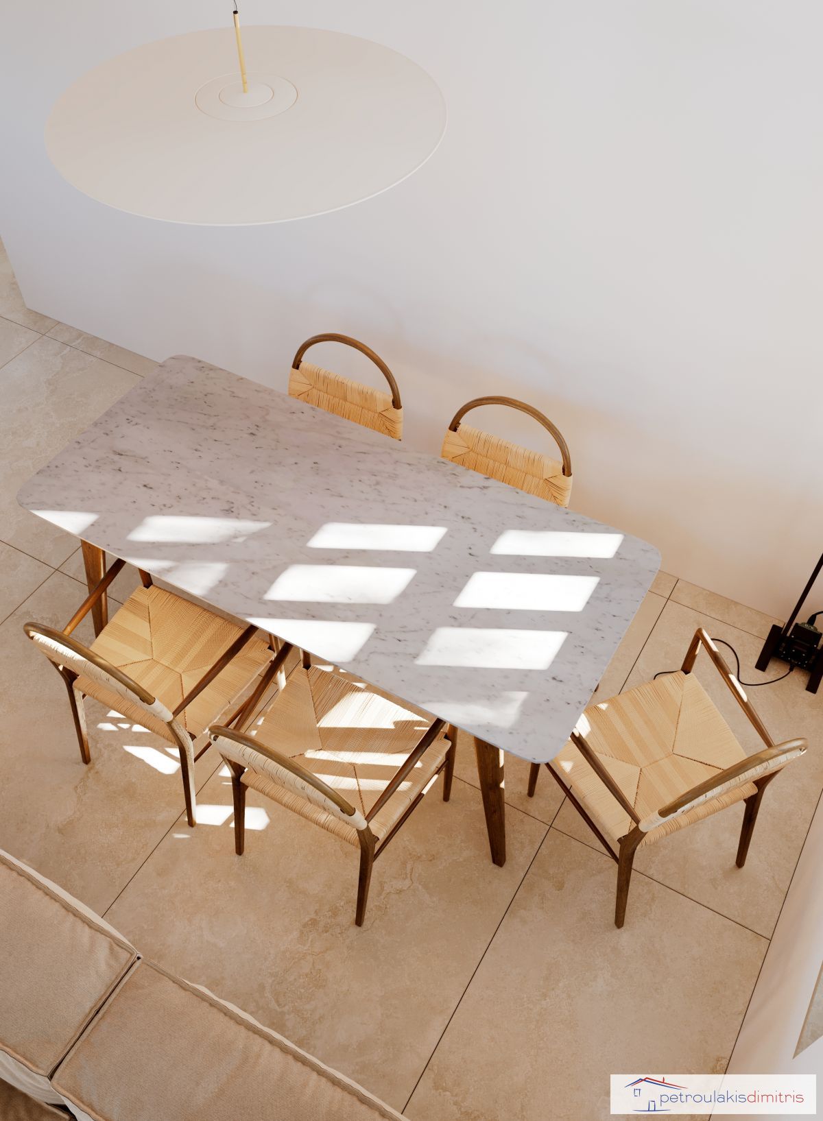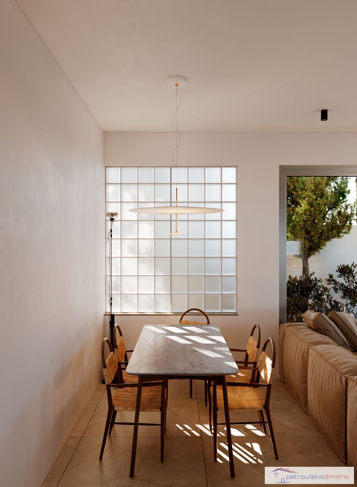 Η κατοικία αναπτύσσεται σε δύο επίπεδα με εσωτερική σκάλα.