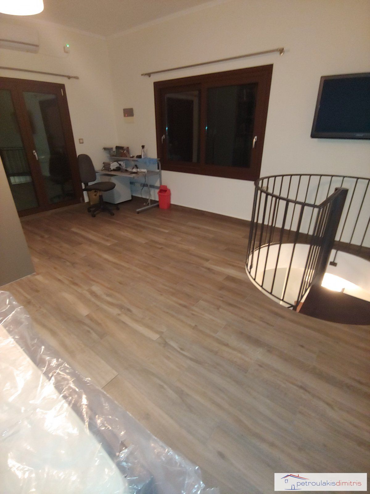 Τα κουφώματα είναι αλουμινίου με διπλά τζάμια και σίτες, ενώ τα δάπεδα είναι από πλακάκι και ξύλο.
