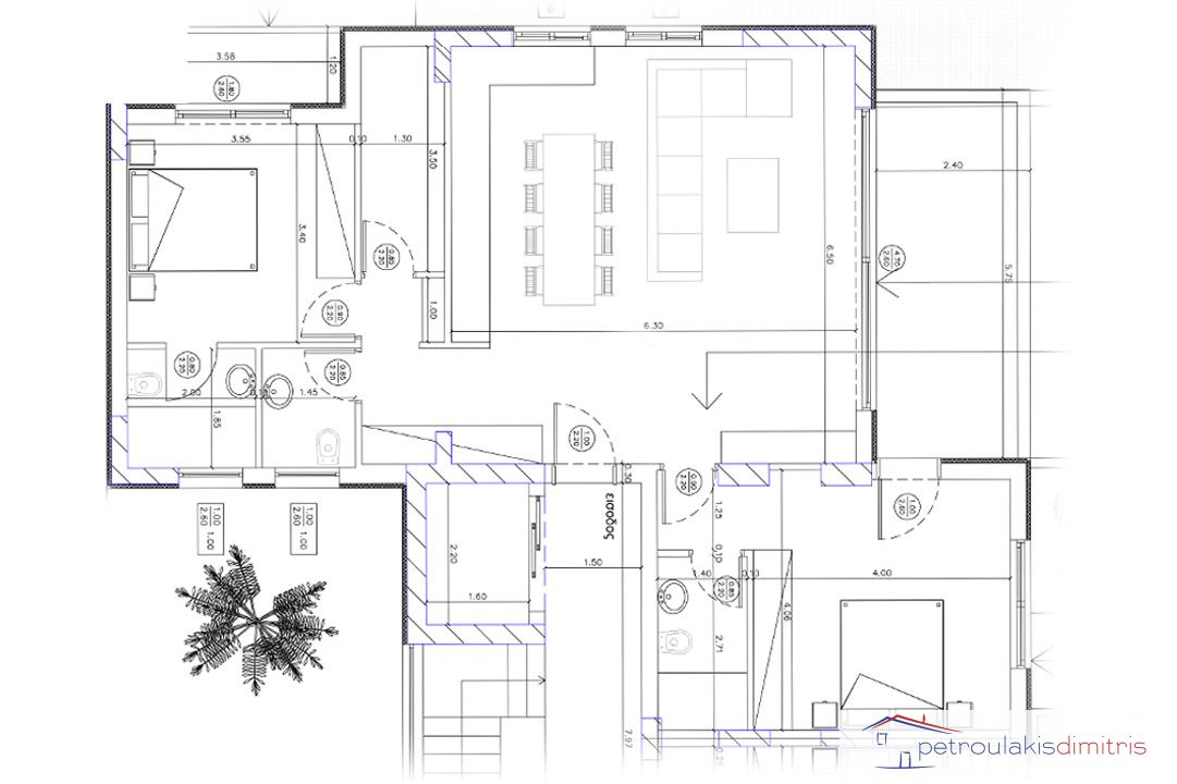 Αποτελείται από 2 υπνοδωμάτια, σαλοκουζίνα, 2 μπάνια και 1 WC.