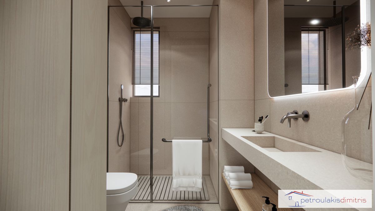 - Κουφώματα αλουμινίου με διπλά τζάμια, εξοπλισμένα με σίτες και ηλεκτρικά ρολλά.